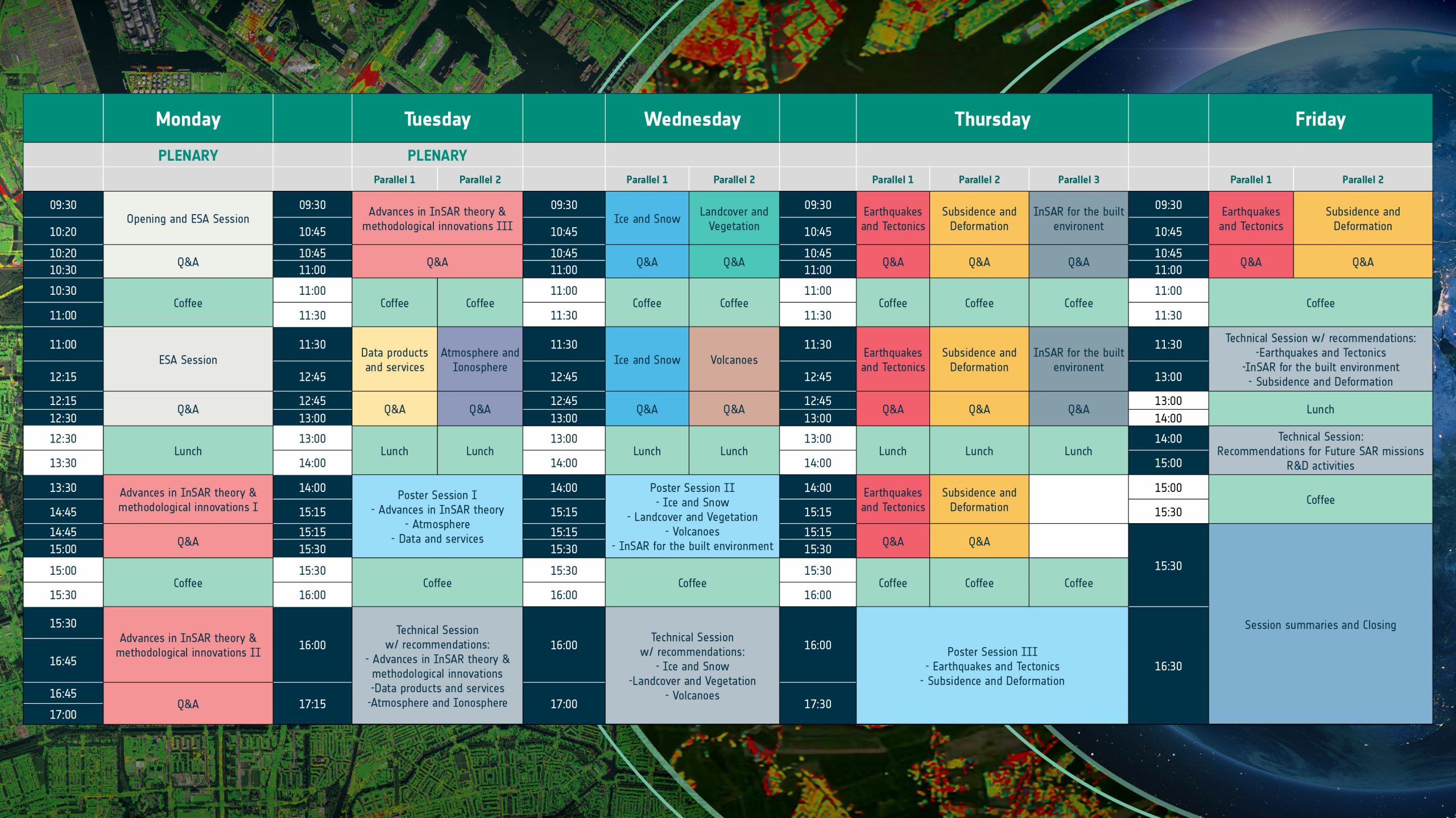 - 2 ESA Sessions, 9 Thematic Sessions with 102 orals and 4 Technical discussions;